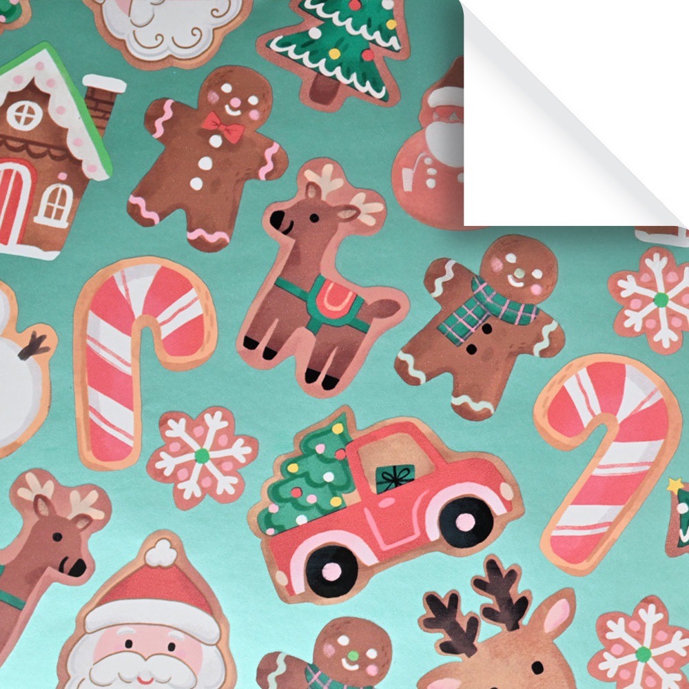 Kinder-Geschenkpapier „Plätzchen Türkis“ – Weihnachtliches Motiv, 70×100 cm, 25 Bogen, FSC-zertifiziert