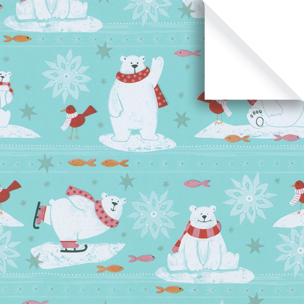 Kinder-Recycling-Geschenkpapier „Trondheim Türkis“ – Weihnachtsmotiv mit Eisbären, 70×100 cm, 25 Bogen