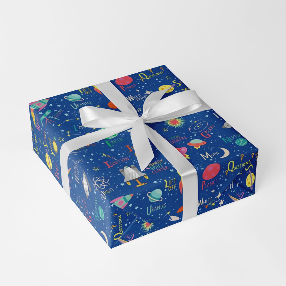 Space Blau Kinder Geschenkpapier Bogen