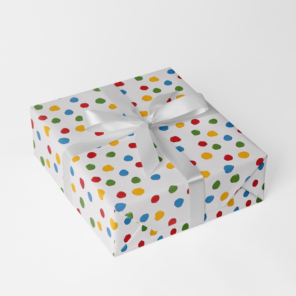 Punkte Farbig Weiss Geschenkpapier Bogen