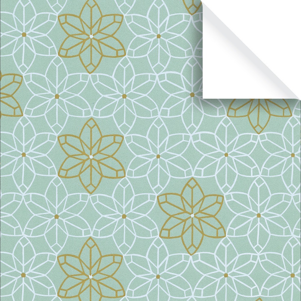 Design: Grafische Sterne in Gold und Weiss auf Salbei-Grund