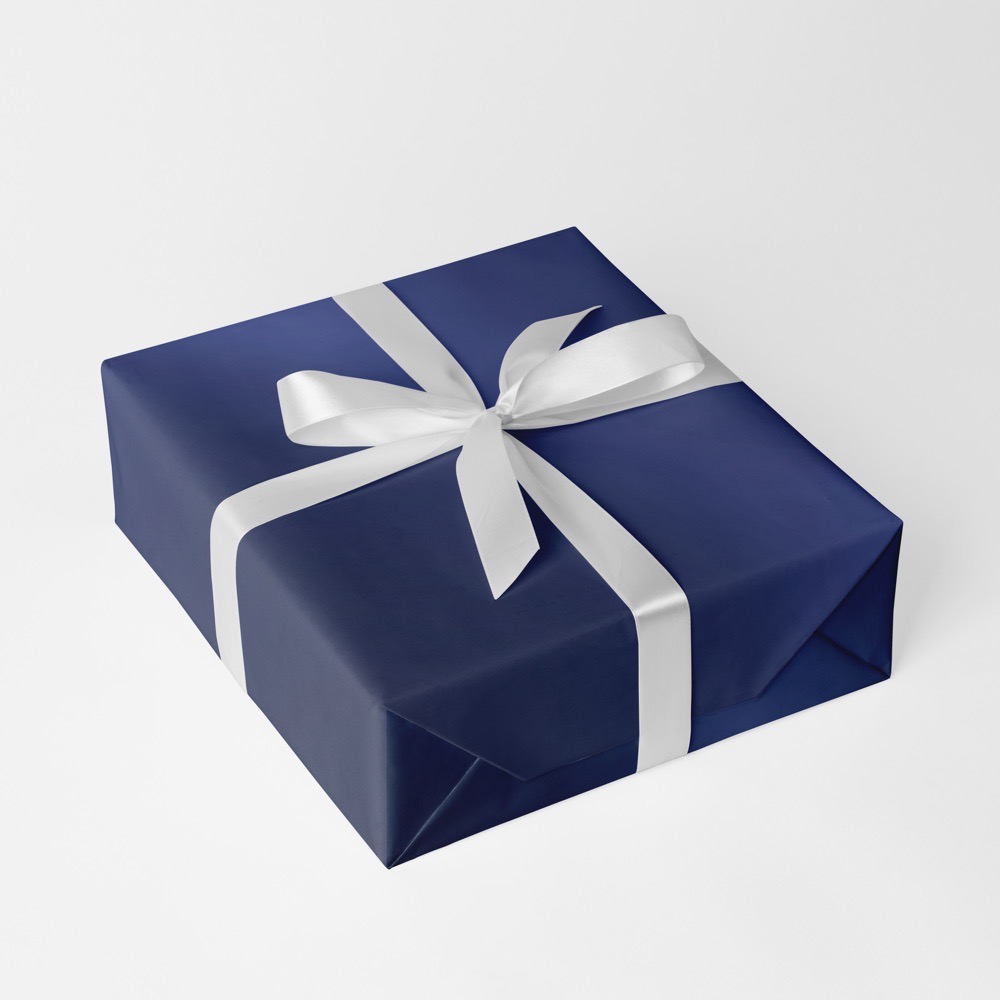 Die glänzend matte dunkelblaue Oberfläche dieses Geschenkpapieres sorgt dafür, dass jedes verpackte Produkt im Geschäft zu einem echten Hingucker wird. Durch die metallisierte Oberfläche reflektiert das Papier das Licht, was eine zusätzliche elegante und festliche Wirkung erzielt.