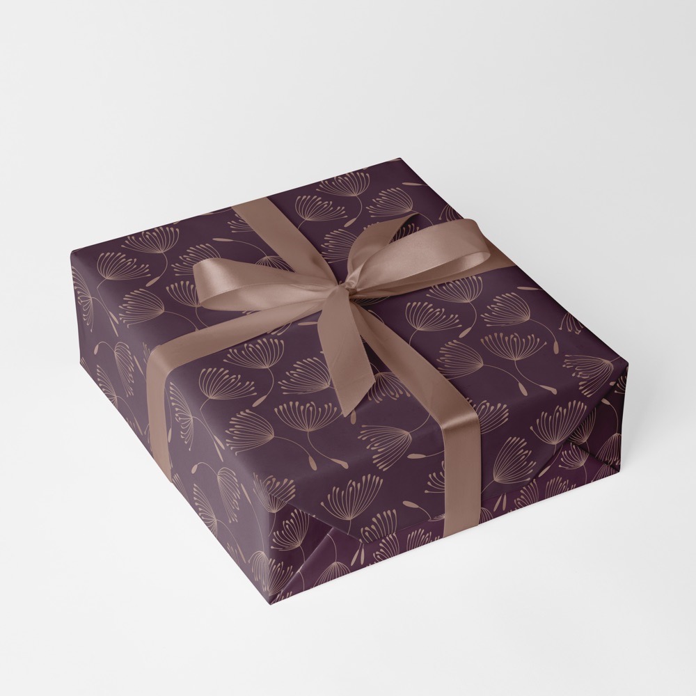 Pusteblume Bordeaux Metallic Geschenkpapier Rolle