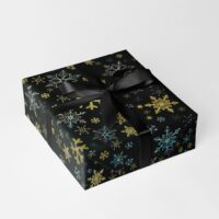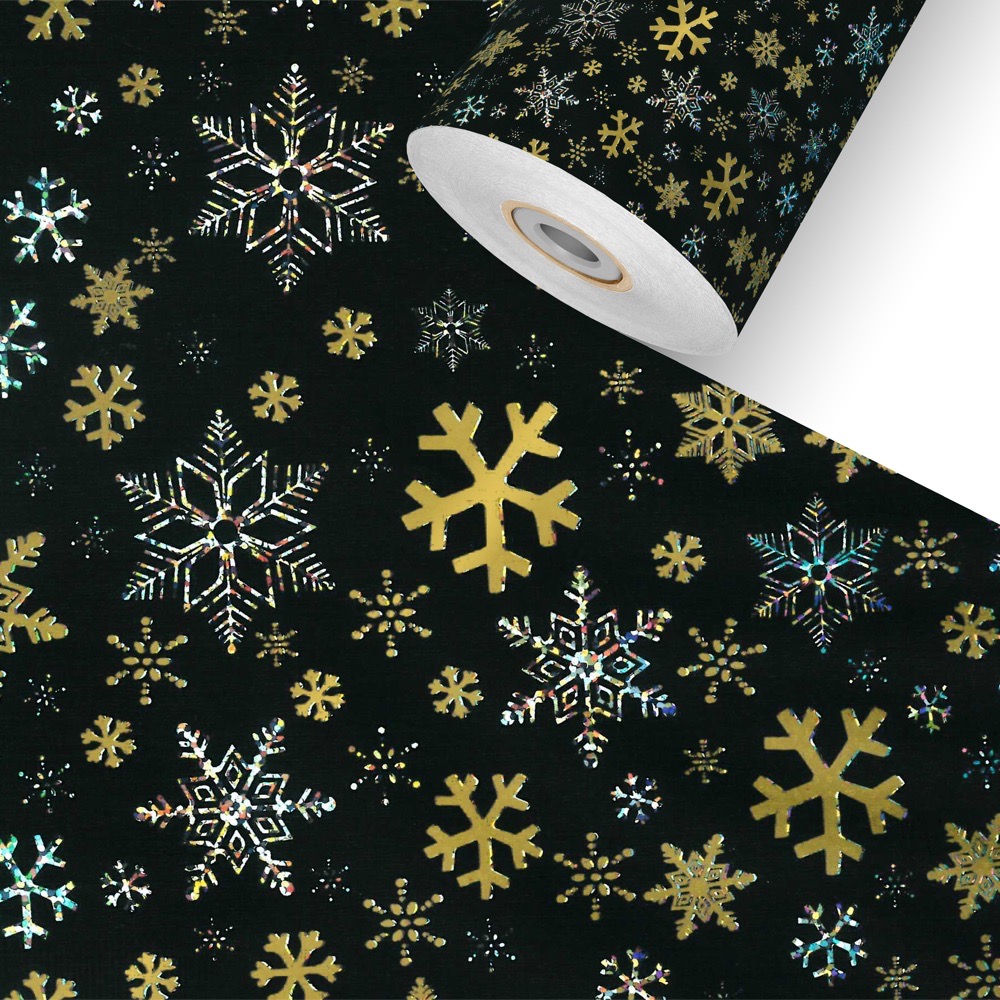 Schneesterne Schwarz Holo Geschenkpapier Rolle