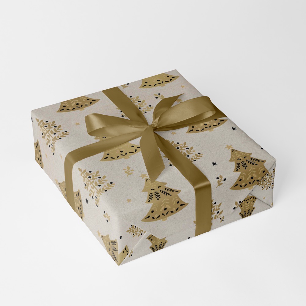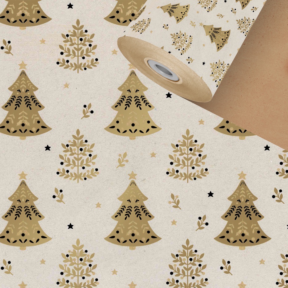 Tannenbäume Beige Recycling Geschenkpapier Rolle