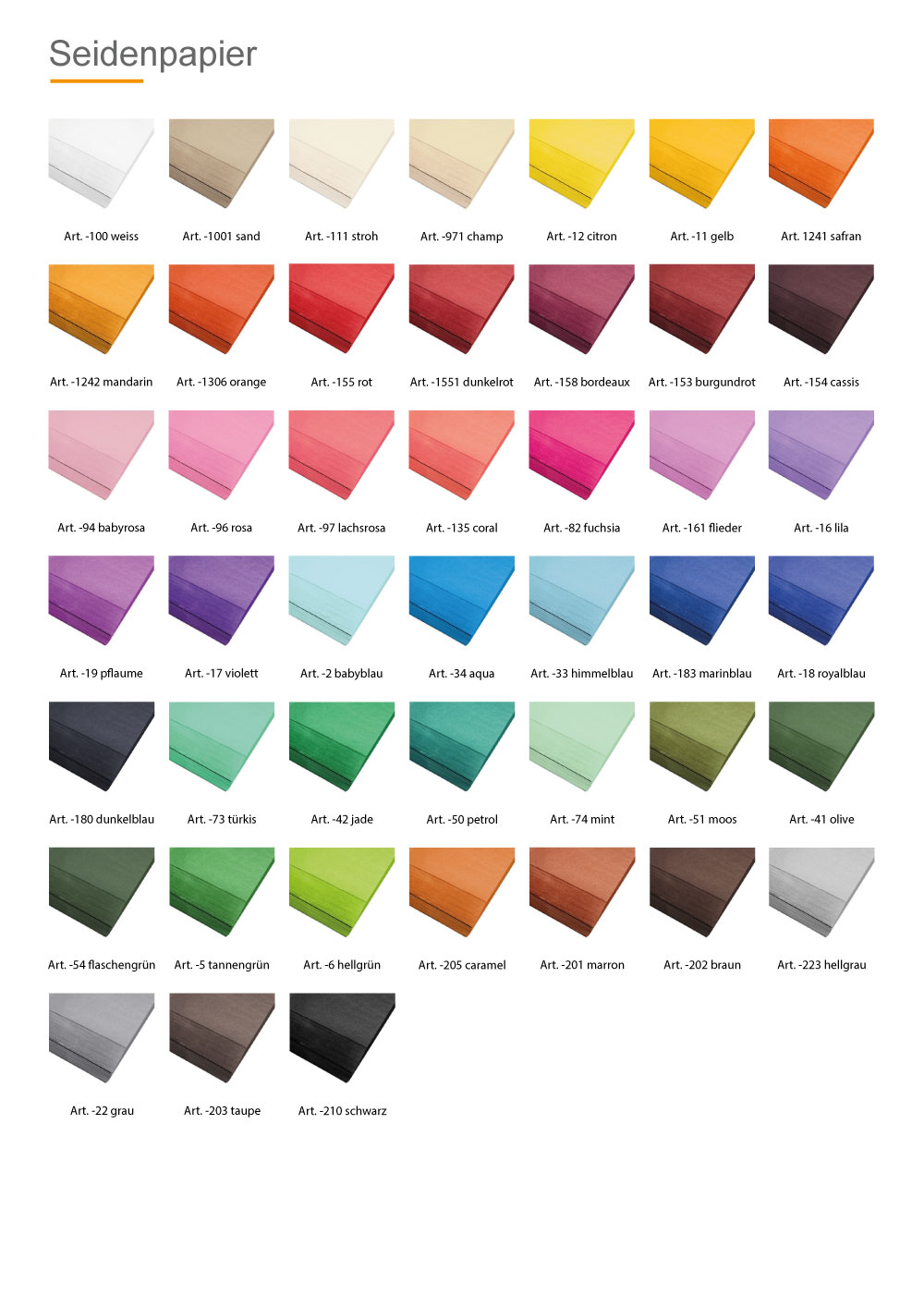 Mit 49 Grundfarben und einem bis zu 6-farbigen Druck eröffnen sich Ihnen beinahe unbegrenzte Gestaltungsmöglichkeiten. Ob dezent und zurückhaltend oder farbenfroh und auffällig: Passen Sie das Design exakt an Ihr Corporate Identity an. Platzieren Sie Ihr Logo, Ihren Slogan oder ein besonderes Muster auf dem Seidenpapier und unterstreichen Sie so das Markenbewusstsein Ihrer Kunden. Das FSC-zertifizierte Material steht dabei für nachhaltige Waldwirtschaft und ökologische Verantwortung, was Ihr Unternehmen als umweltbewussten Akteur hervorhebt.